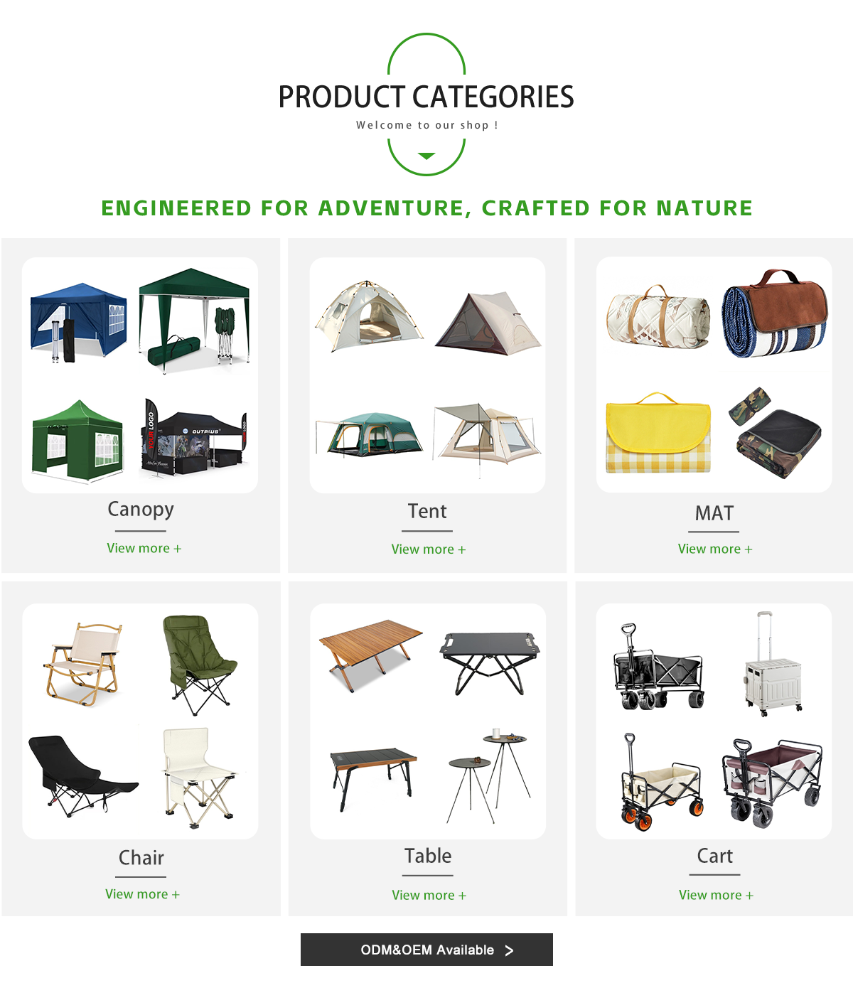 Productos principales:Tienda de campaña, silla, mesa, alfombra, carro